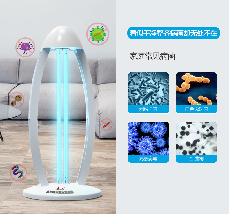 4.看不见的病菌就潜伏在我们身边,免疫力低的老年人和孩童更容易被病菌侵害,立威空气净化消毒灯为您的家庭健康保驾护航。